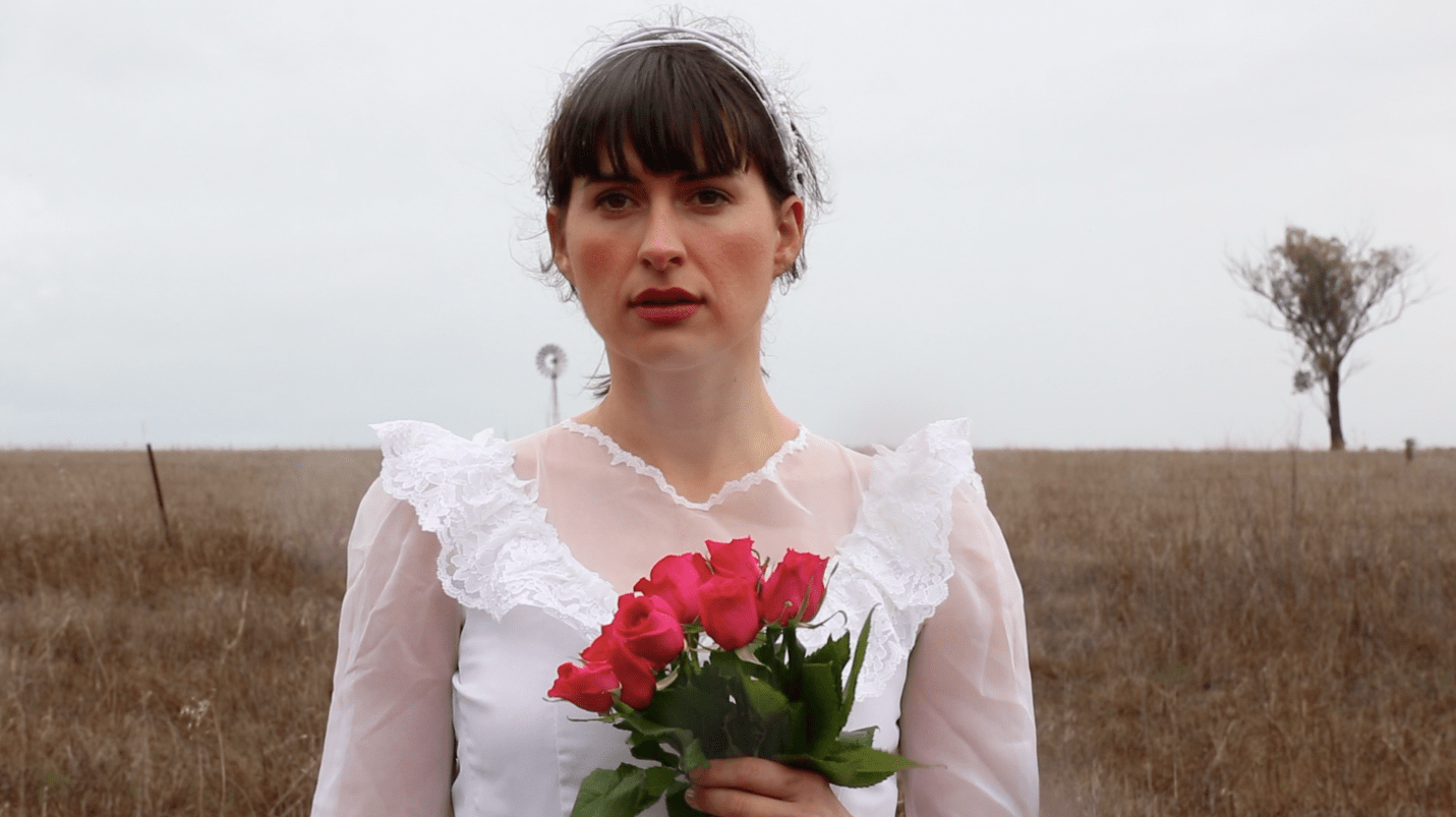 ‘Lands Bride’ is a performance about drought, losing hope and wrestling with the pain and beauty of human existence. The Single Chanel video was filmed in drought affected Duri, Tamworth, regional NSW, Hearn’s hometown where both her great grandmother, grandmother and her mother lived and where many years of farming women have experienced trauma and drought.